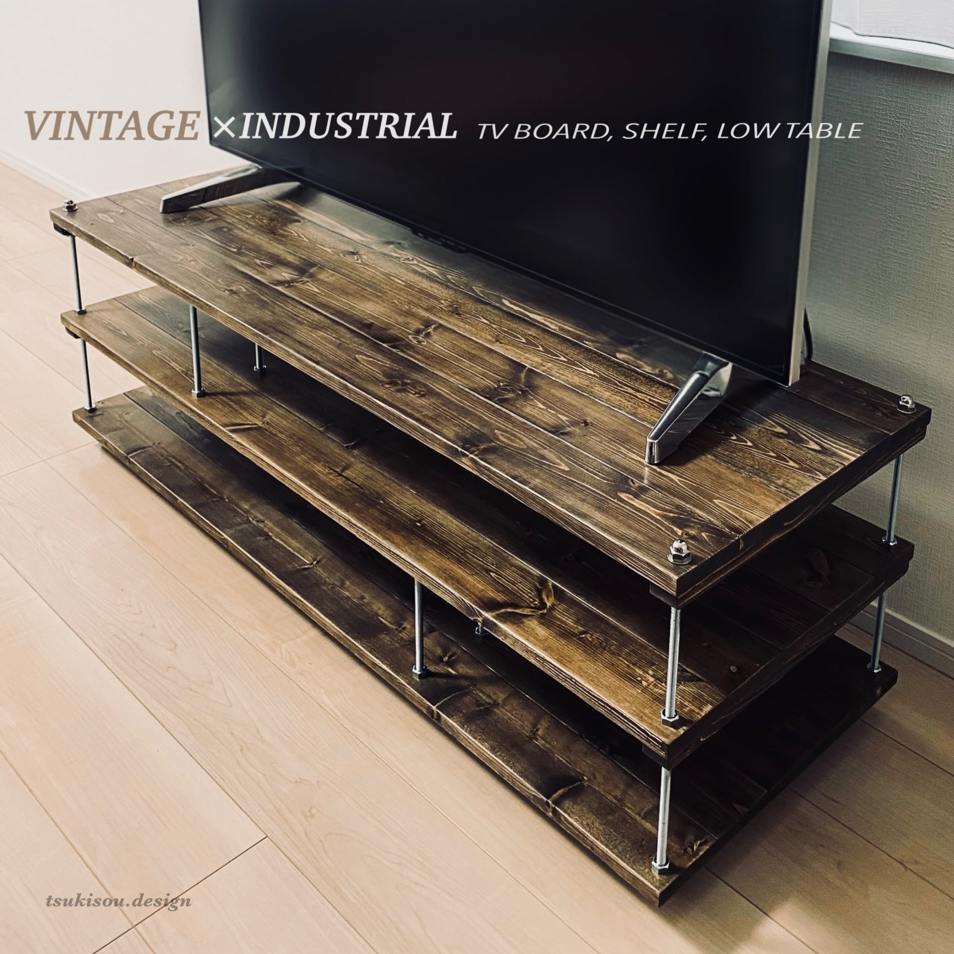 VINTAGE×INDUSTRIAL テレビ台 テレビボード テレビラック テレビスタンド シェルフ オープンシェルフ オープンラック サイズオーダー 木製 観葉植物 | tsukisou.design